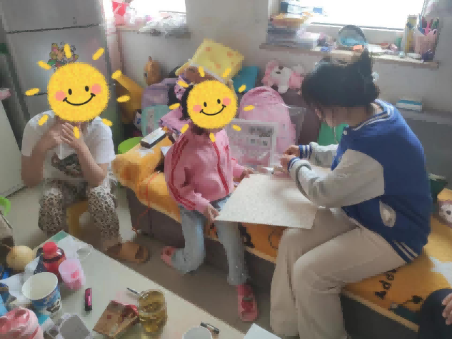 依辖区特性而言,辖区内的部分困境儿童因回迁原因,居住地离辖区较远且居住较为分散,因此青年公园街道社会工作服务站积极转换服务策略,延伸服务空间,将入户走访与资源链接相结合。同时依据儿童的性格特性设计并提供相应的儿童服务,活泼洋溢者的游戏互动,睿智灵透者的谜题破解,乖巧文静者的颗粒作画,心智单纯者的创意玩乐,“小鱼儿”在无声的世界画满多彩律动音符,社工通过简单的手语和一纸一笔与“小鱼儿”家庭积极的互动,护童成长,酝酿童趣。