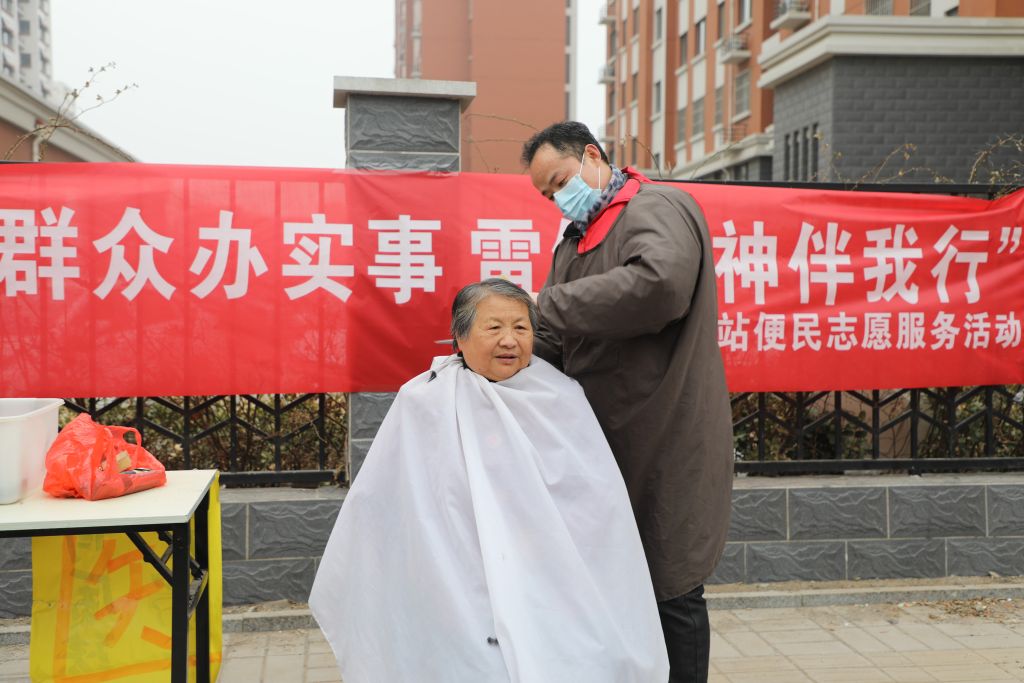 一把椅子、一块围布、一个工具包组成了“临时理发店”,辖区居民按照志愿者的引导,大家井然有序地排好队伍,慢慢等着刘老师进行剪发。刘老师精湛的手艺和热情的服务,获得了居民的一致称赞。“咱们这义剪活动太好了,剪完头发我整个人都感觉精神了。”居民张大爷开心地说到。