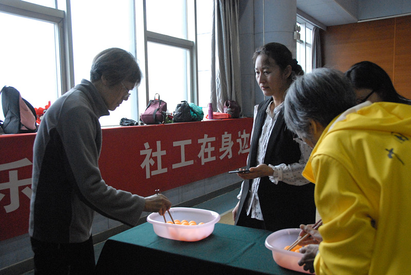 2018年5月22日星期二上午九点半,随着济南市军休中心俞主任的一声趣味运动会比赛正式开始,百余名军休干部及家属展开了激烈的角逐,随着比赛的进行,笑声四起,现场气氛十分活跃。比赛分为沙包投准、筷子夹乒乓球、套圈和挑羽毛球四种看似简单实际很考验技巧的项目,在社工和志愿者的精心组织下,比赛进行的非常流畅,在观众们的叫好声和参赛队员胜利的喜悦中,各项比赛决出了一二三等奖,军休干部们高兴的分享着比赛的乐趣。
