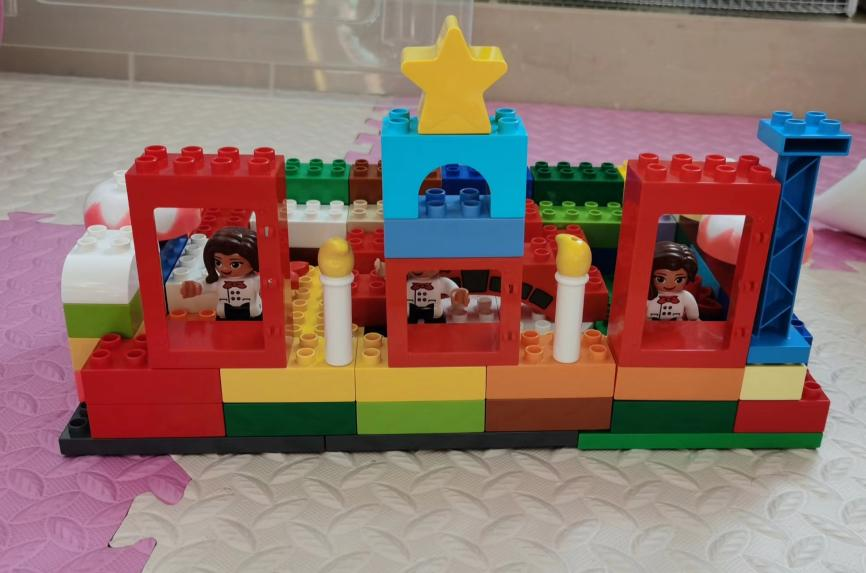 活动一开始,社工向患儿们介绍了医师节的由来,并邀请大家一起分享自己眼中的医生形象,大家各抒己见。“我觉得医生是做手术的,他们给我做手术我的病才能治好”,“医生给我看X光片”“医生们都穿着白大褂”……医生的形象在患儿的眼中各不相同,每位患儿对医生的形象都有着自己的理解。接下来,社工给患儿们布置任务用乐高积木来搭建与医生相关的事物或场景,从而进一步提升患儿们对医生的认识,小朋友们展开了丰富的想象力搭建了医院、装有动物的救护车和做核酸的场景等等。