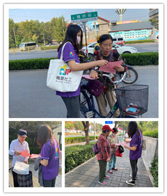 9月28日,项目组社工身着工装,手提宣传单,走进了社区的街道中。我们捡起了行人不经意间留下的垃圾,我们将路人因赶时间而没有放好的单车摆齐,我们希望通过我们的每一个善意举动能树立一个榜样,能为创建文明城市奉献自己的力量。不仅如此,项目组拥有多项针对老年人的活动,也有致力于社区发展的活动,更有服务社区居民的公益性内容。为了让大家了解到更多的项目内容,我们通过活动的照片和单页向居民们展示了项目风采。通过此举,获得了众多社区居民的关注,扩大了项目组的影响力。