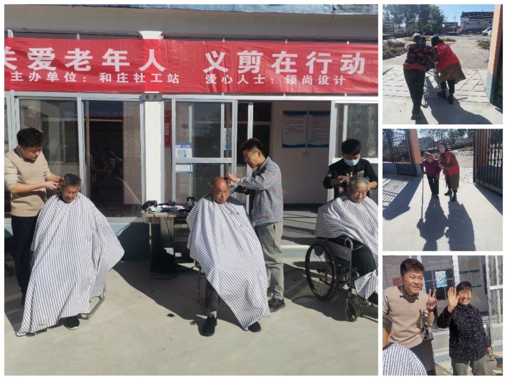 为解决和庄镇西平洲村独居老人及行动不方便的老人”理发难”的问题,提升他们的幸福感。10月10日和庄镇社工站链接领尚设计的理发师们来到西平洲村开展了“关爱老年人 义剪在行动”爱心义剪活动。此次活动为出行不便的老年人在家门口集中理发,吸引了本村40余位老人参与,其中上门服务1人。
