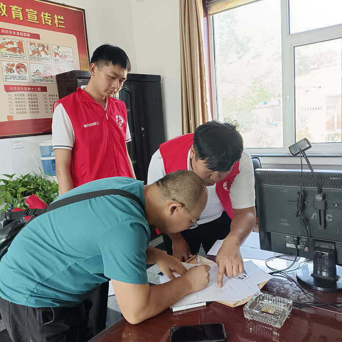 直到出发前,白云湖社工站吕海峰帮助李海平检查哥哥李林平的证件、行李是否齐全。