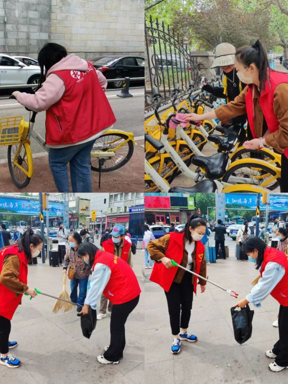 除了这些基本的服务外,志愿者们还积极参与了火车站的环境维护工作。他们认真捡拾站台及周边的垃圾,保持环境整洁。同时,还协助工作人员摆放共享单车,确保车站周边交通秩序井然有序。
