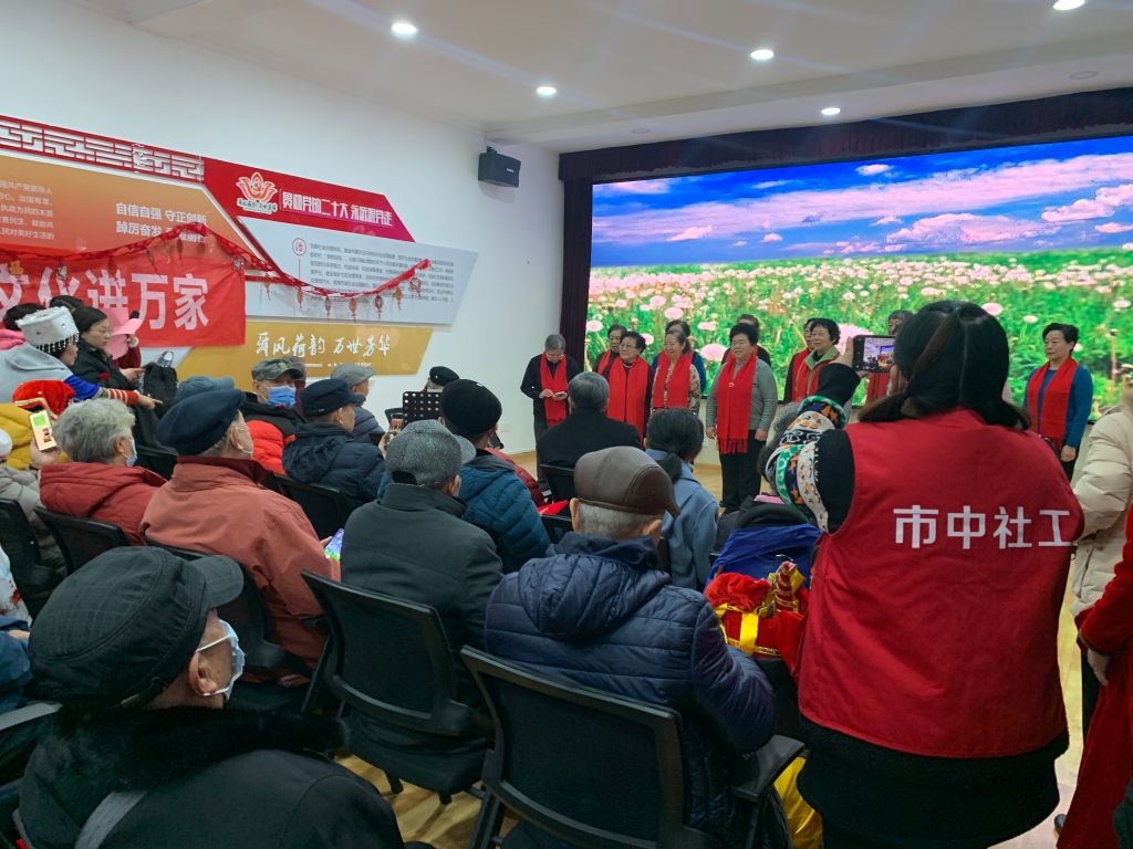 为营造欢乐、喜庆、祥和的节日氛围,丰富社区老年居民的业余文化生活,增强辖区居民的凝聚力,促进幸福社区建设,弘扬“奉献、友爱、互助、进步”的志愿服务精神。1月31日上午,舜耕街道社工站联合社区志愿社团开展了主题为“庆新年,迎新春”文艺汇演。本次活动邀请社区民族舞蹈队、社区点吹管乐团、社区葫芦丝艺术团、梨园荟萃京剧团以及社区志愿社团团长王速成为活动带来精彩演出。