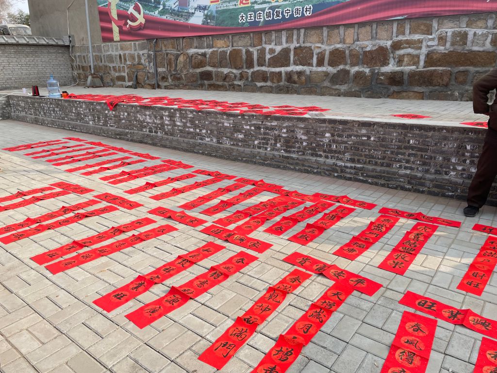 新春将至,翰墨飘香。1月11日,大王庄镇社工站链接山谷书法教育培训中心的老师们走进复宁街村举办迎新春、写春联活动,为村内的留守老年人、残疾人书写春联送上新春的祝福,让他们过一个暖暖的春节。
