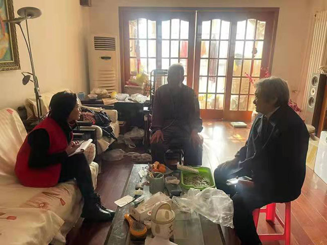 11月份,舜耕街道社工站在社区居委会的转介下,了解到辖区内有一户空巢老人王老师,两位老人都已经89岁高龄,在入户后发现老人生活条件不错,心态还都比较好,但眼神充满了孤独和忧虑。老人有三个女儿,都在国外居住,已有二十多年不回国了,虽然经常打电话或视频聊天,但还是无法弥补老人挂念子女的心情,两位老人因年事已高,腿脚走路不太方便,只有王老师偶尔出门买菜活动活动,每次路过社工站都会主动来寻找社工帮助。