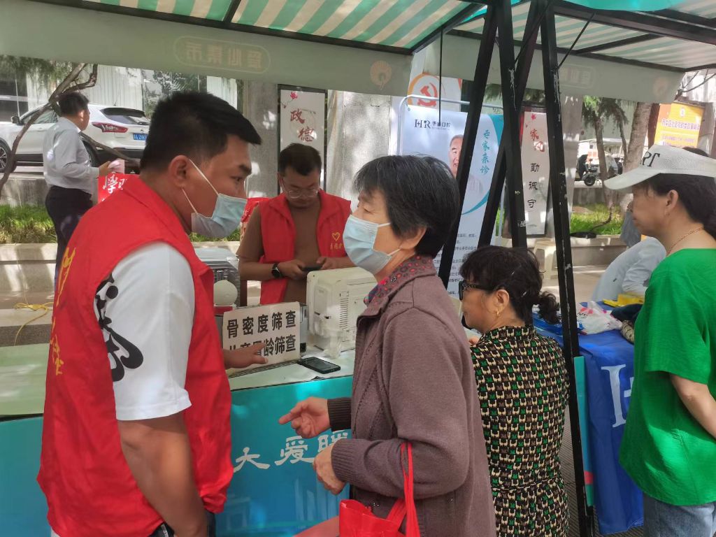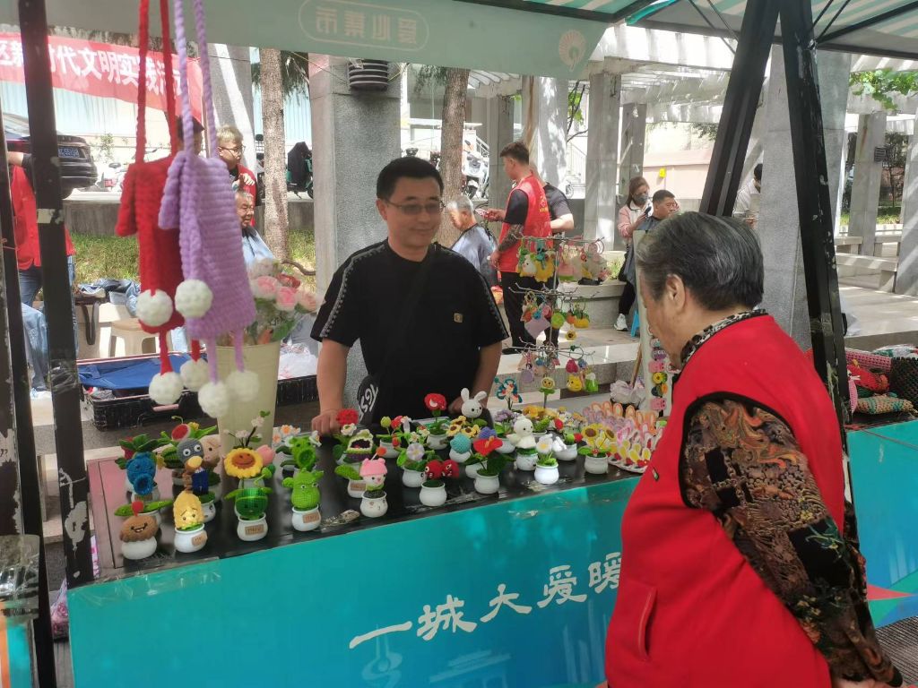 此次市集从居民新需求出发,汇聚了各类志愿服务项目,包括非遗手工艺品售卖、义诊、义剪、知识普及等,活动现场,非遗手工品摊位成为一大亮点,包括绣球香包、非遗胸针、手工串珠、掐丝珐琅等琳琅满目的手工艺品,迅速吸引了众多居民观看、购买,在居民收获心仪物品的同时,展现了非遗手工艺品的价值、弘扬了中华优秀传统非遗文化。义剪摊位依然是一大热点,天气热了,来理发的居民络绎不绝,志愿服务的小姑娘、小伙子们耐心、细致地为大家修剪最合适的发型。其他的摊位也在有序开展,为大家进行骨密度筛查、口腔检查、反诈骗、理财、养生护理、政策救助知识宣传等一系列便民、惠民活动,社工也在此期间积极与居民交流,听取活动反馈,定位居民最新动态需求,为社区服务积蓄力量。此次公益市集的开展,在提供多样化志愿服务,满足居民需求的同时,提升了社区志愿服务温度、社区志愿服务氛围更加浓厚、积累了社区志愿服务文化资本。